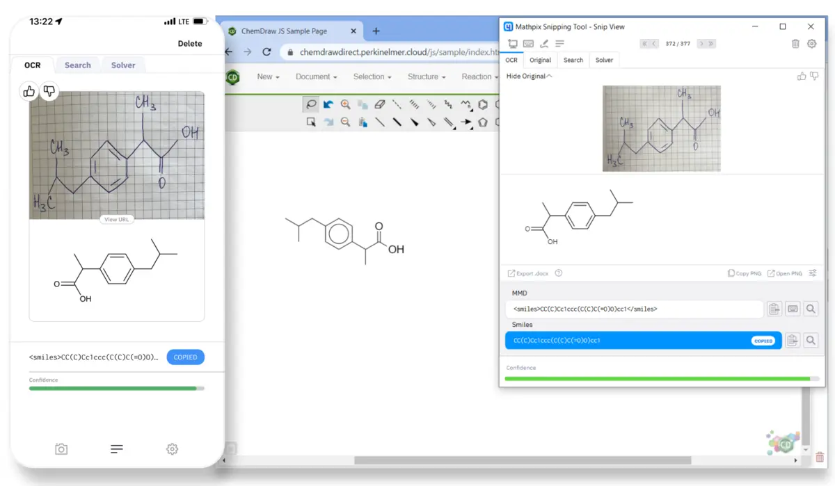 Instantly digitize printed and handwritten chemistry notes into SMILES and paste it to Snip.